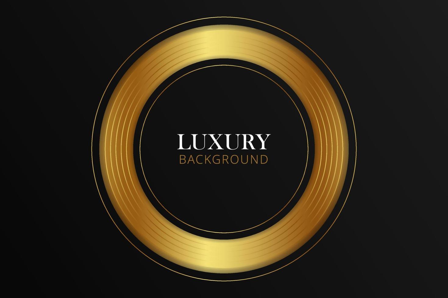 The golden 3D ring is surrounded by a radial border, with a minimalist black background for a premium look. The realistic metal texture and glowing gradient add a touch of technology, VIP events vector