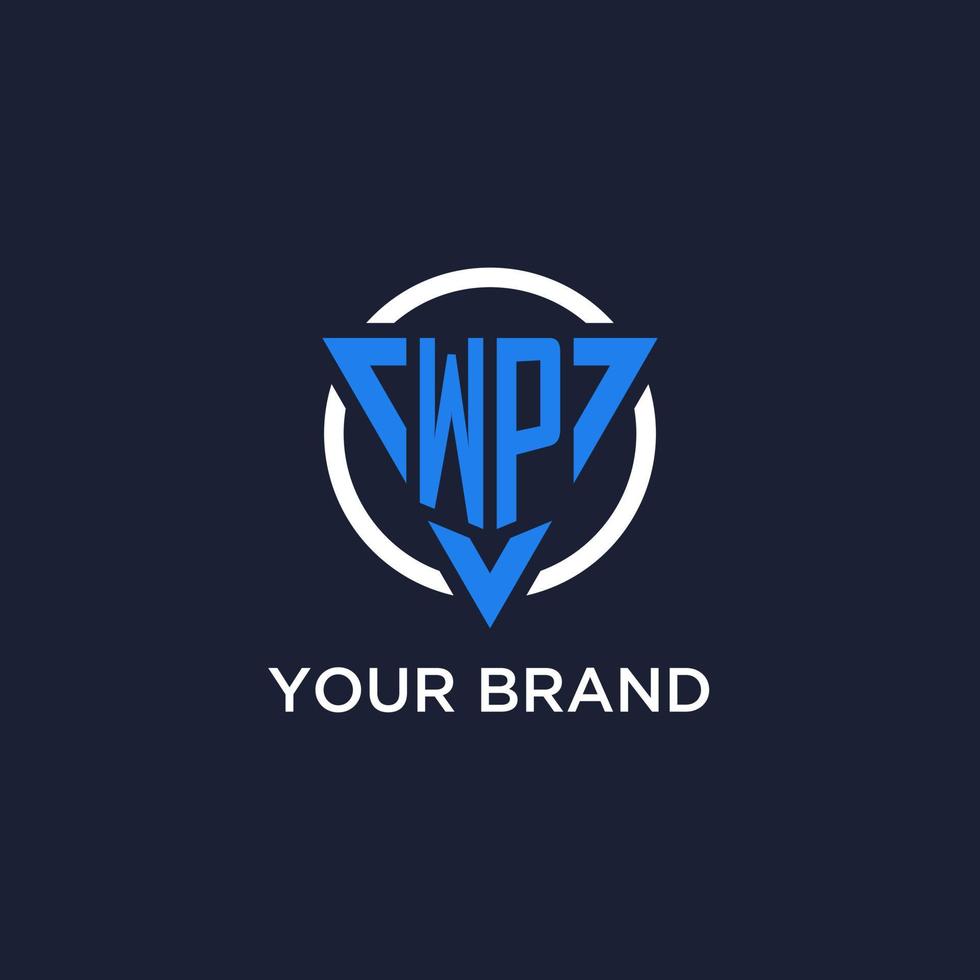 WP monogram logo with triangle shape and circle design elements Pro Vector and Pro SVG