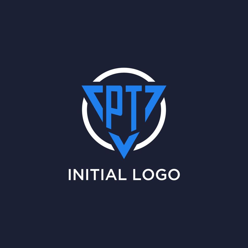 PT monogram logo with triangle shape and circle design elements Pro Vector and Pro SVG