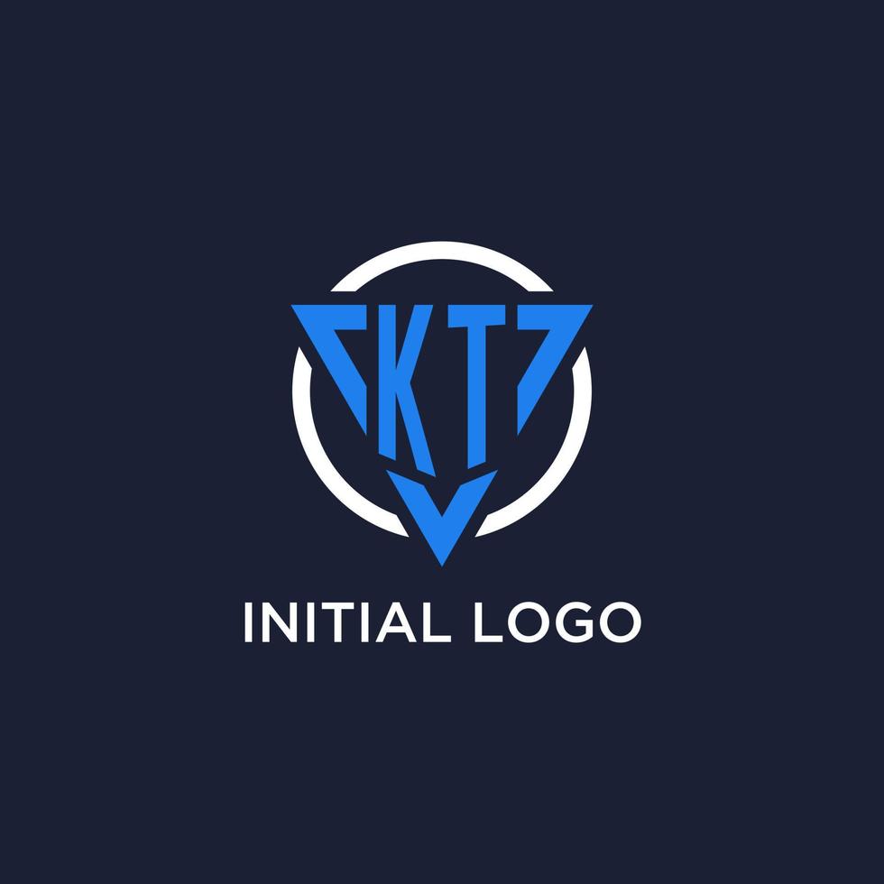KT monogram logo with triangle shape and circle design elements Pro Vector and Pro SVG