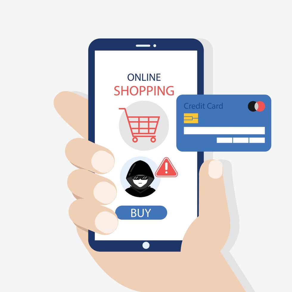 Internet hacker stealing money cybercrime from smartphone Online Shopping app. Pro Vector