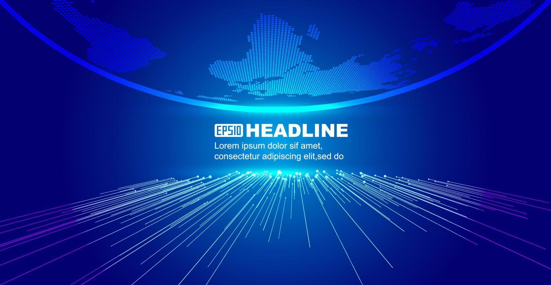 Dot and line link ray around Digital Earth, Internet technology background Pro Vector