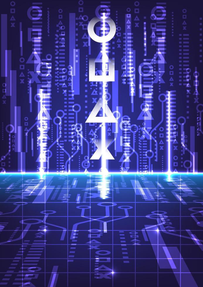 Perspective blue neon light with game button abstract background of hi-tech technology concept. Pro Vector