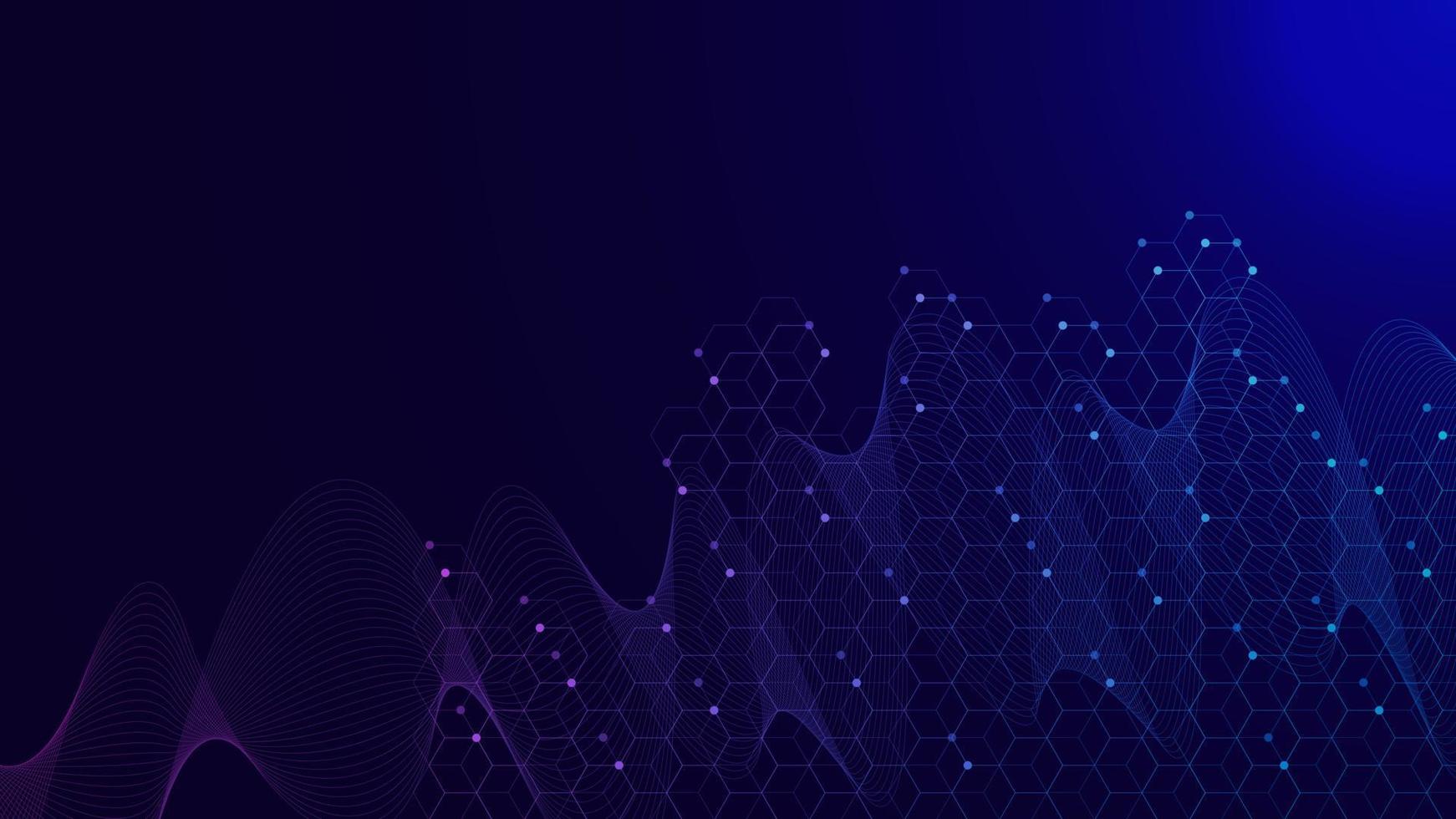 Abstract dots and line with hexagons, particles and wave flow background. Molecular structure, digital data visualization, technology, chemistry concept. Vector illustration. Pro Vector