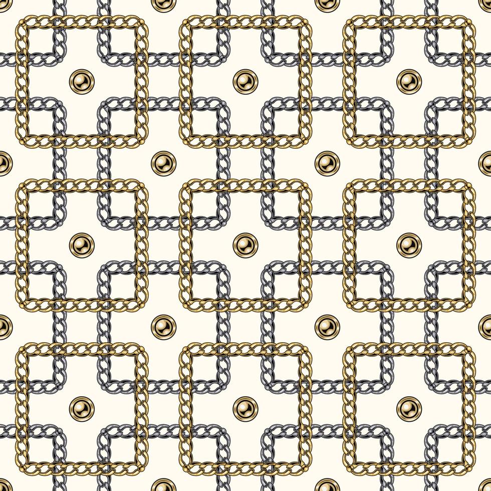 Seamless geometric chain pattern with intricate overlapping squares on white background. Gold and silver chains. Vector Illustration. Pro Vector