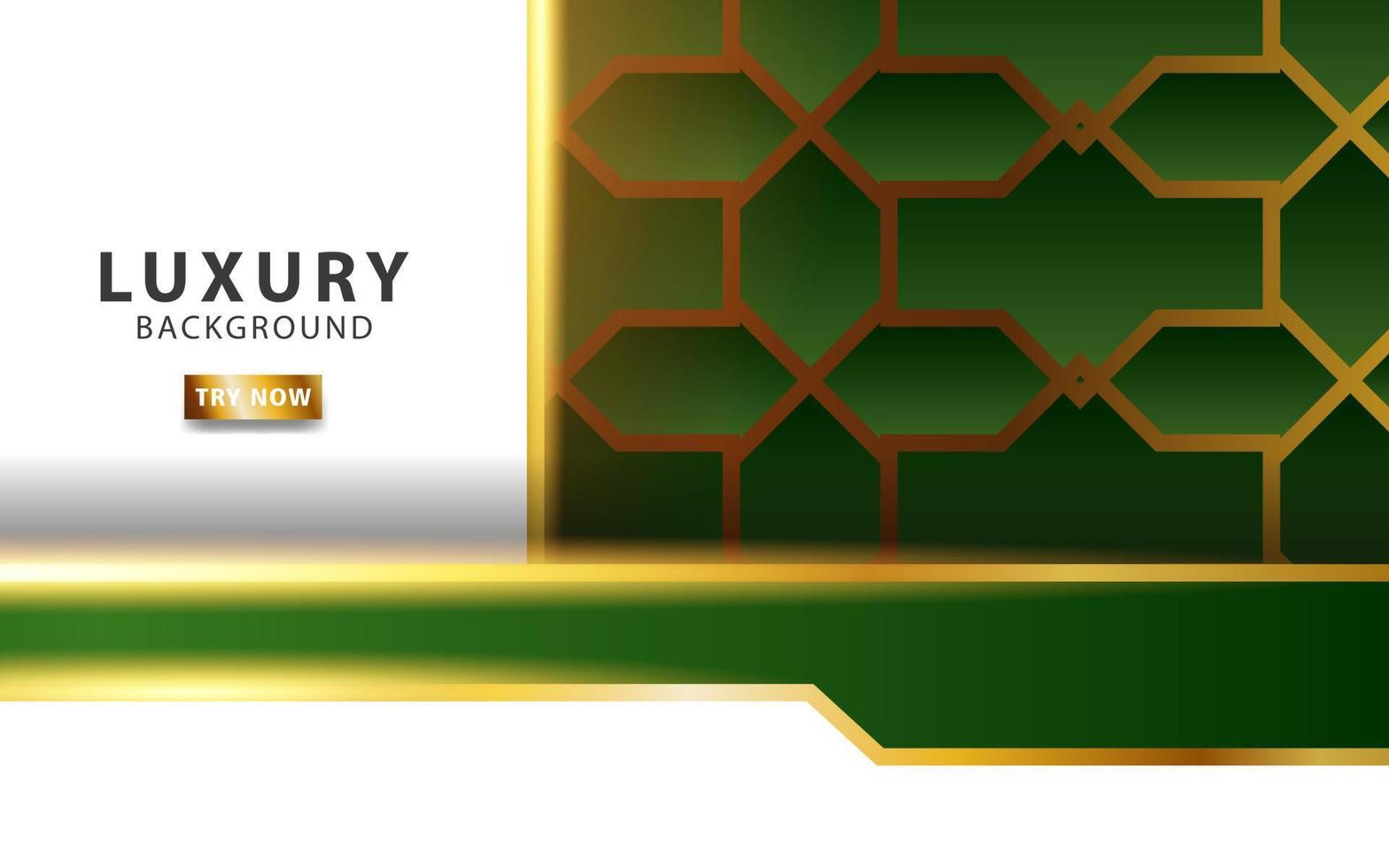 luxury abstract premium green and white vector background banner with gold line .Overlap layers with paper effect. Realistic light effect on geometric textured pattern. Pro Vector