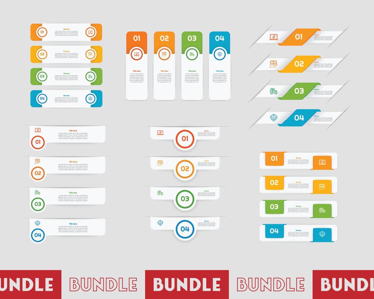 Infographic bundle set with 4 steps, options or processes for workflow layout, diagram, annual report, presentation and web design. Pro Vector