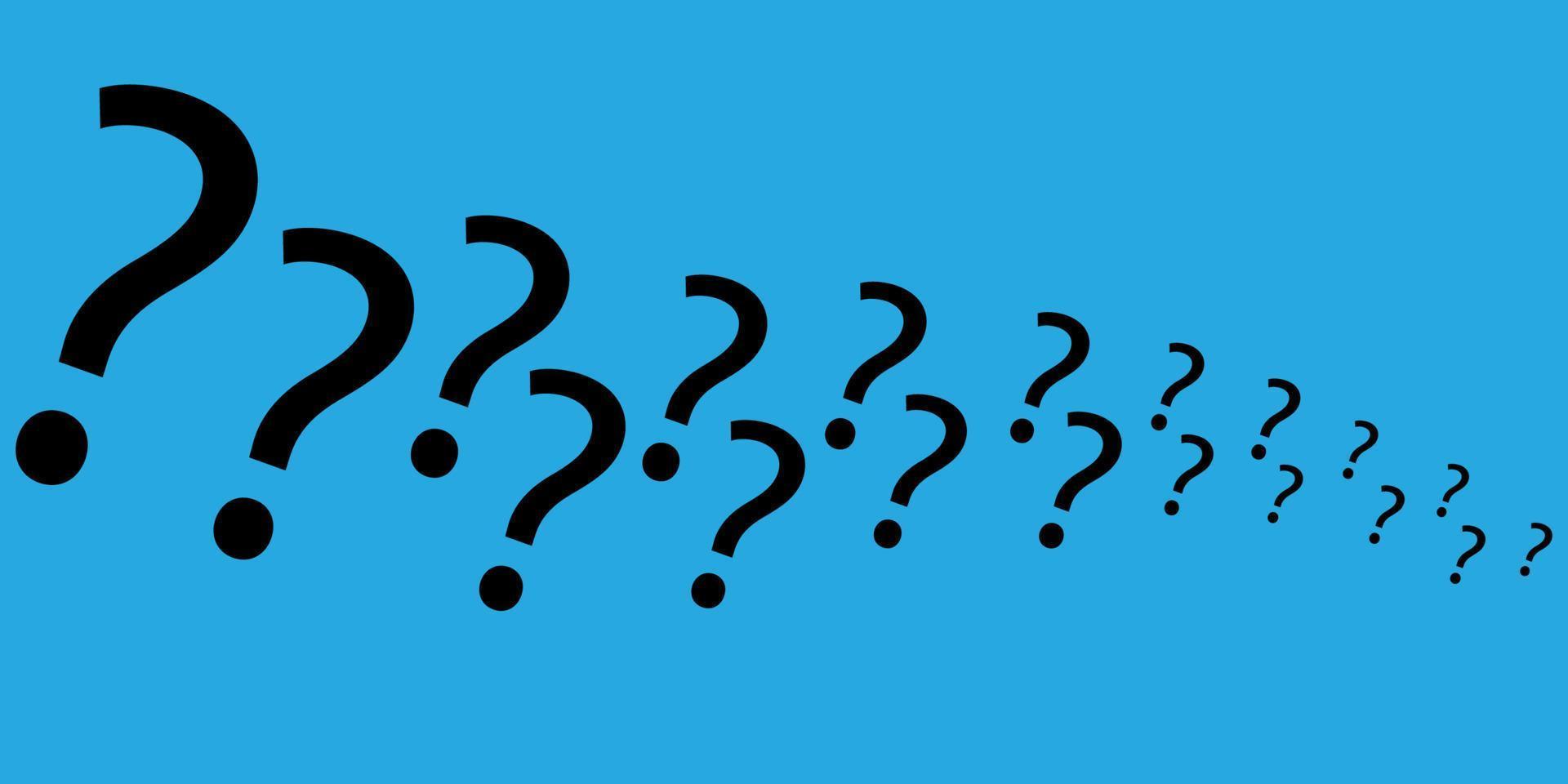 Uncertainty concept question mark symbol of different sizes forming a path on blue background Pro Vector