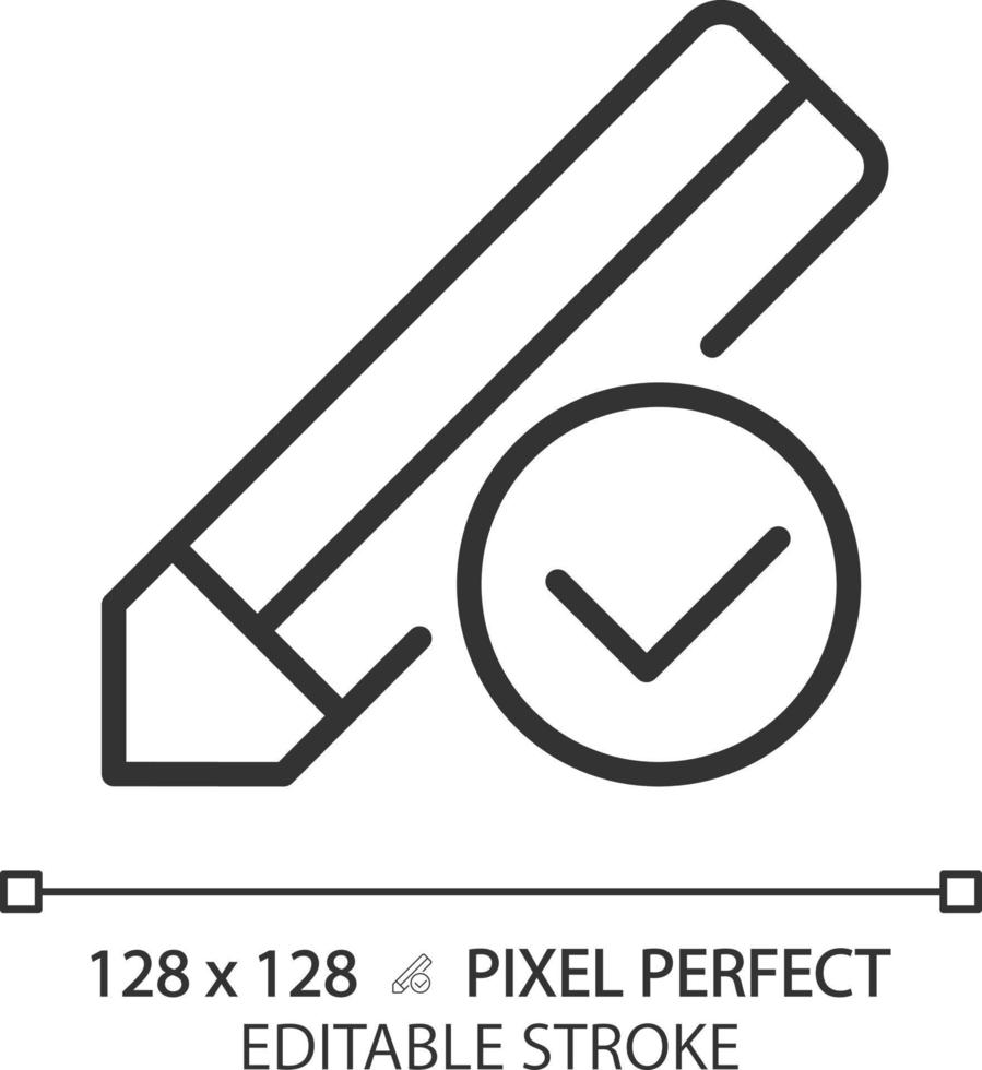 Pencil with check mark pixel perfect linear icon. Voting process. Writing approved information. Correct notes. Thin line illustration. Contour symbol. Vector outline drawing. Editable stroke Pro Vector