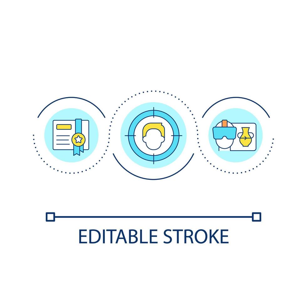 Certificate program with VR learning approach loop concept icon. Student-centered instruction abstract idea thin line illustration. Isolated outline drawing. Editable stroke Pro Vector