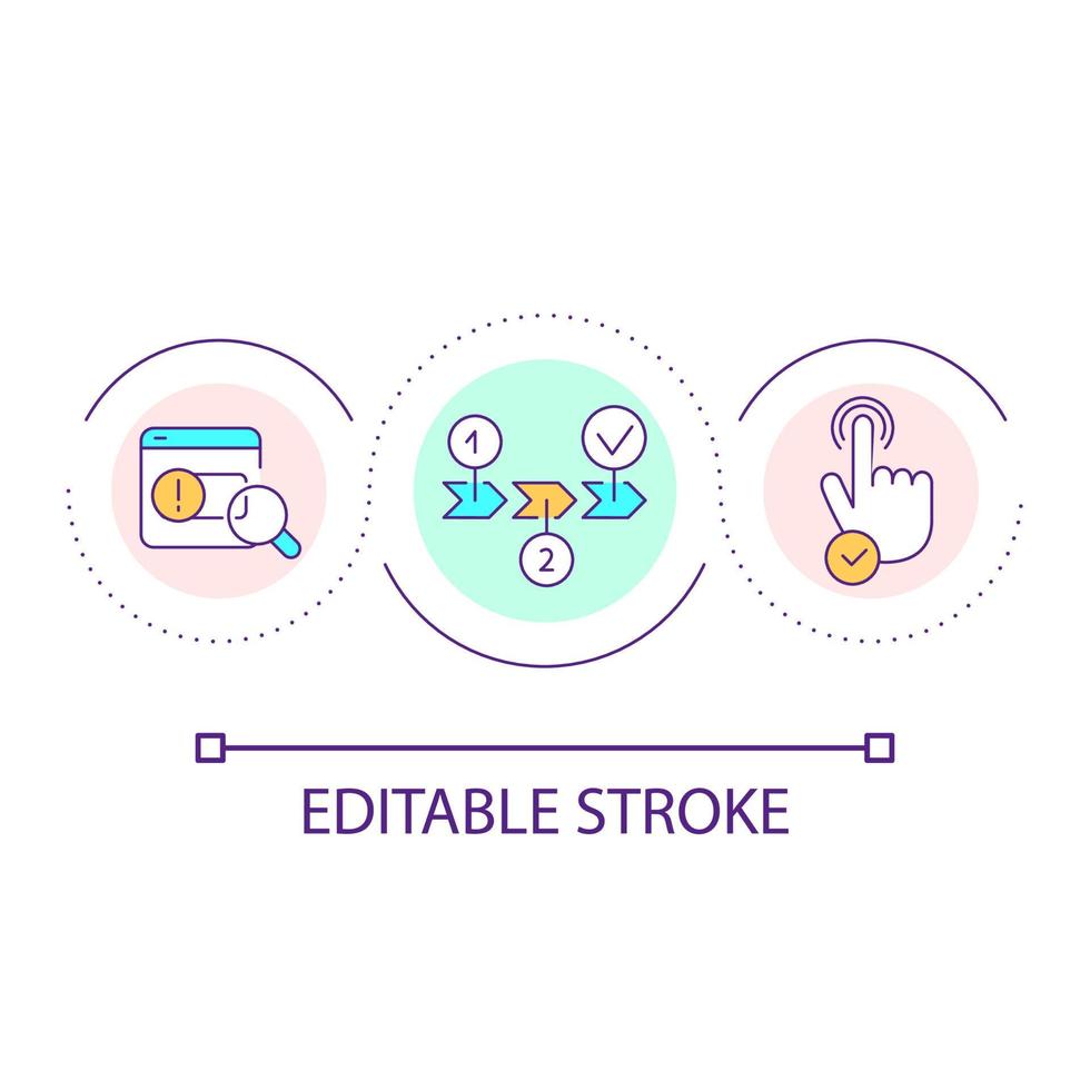 Find complex issues loop concept icon. Search mistakes. Problems solving. Product testing abstract idea thin line illustration. Isolated outline drawing. Editable stroke Pro Vector