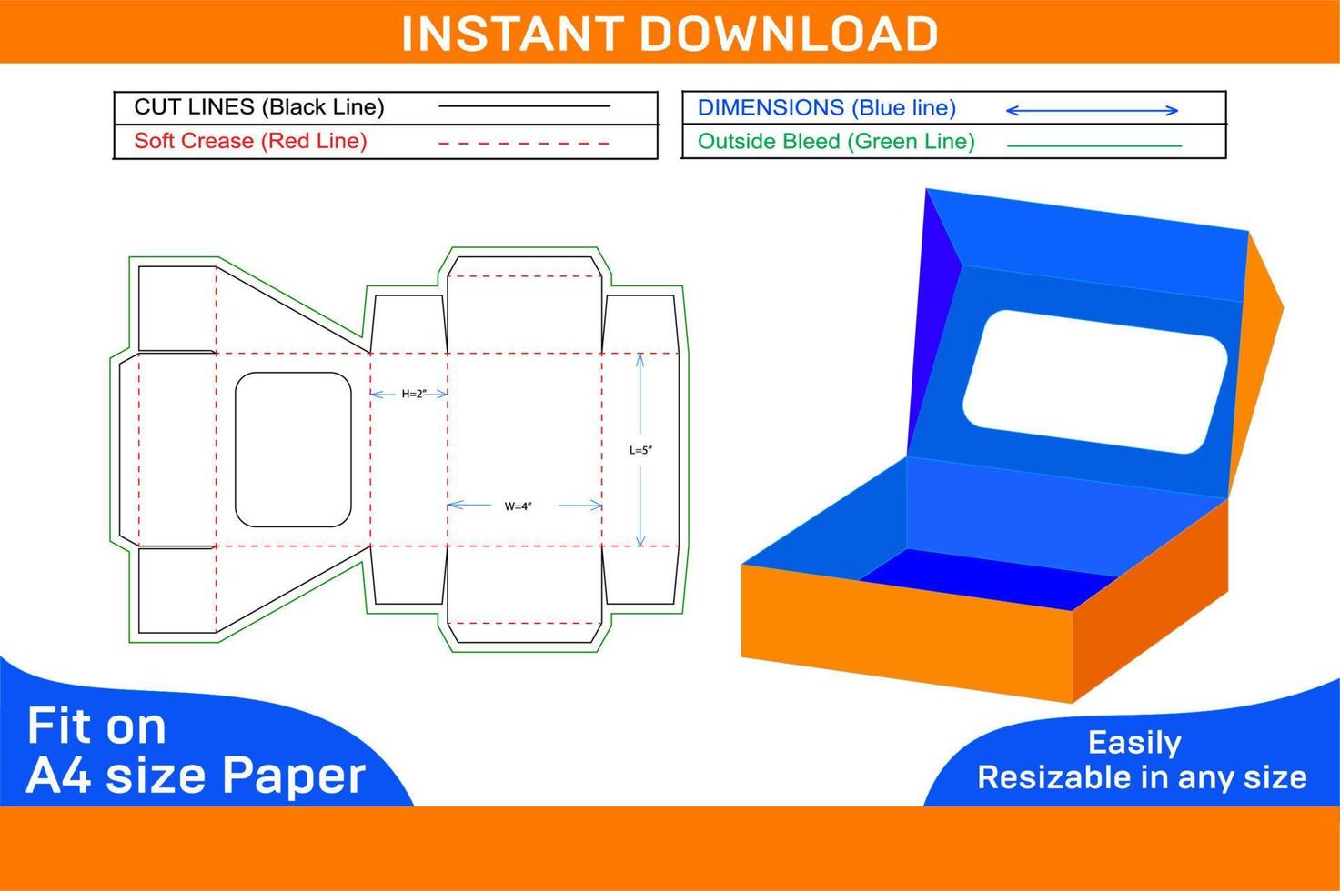 Straight tuck end box with window dieline template and 3D box easily editable and resizable Box dieline and 3D box Pro Vector