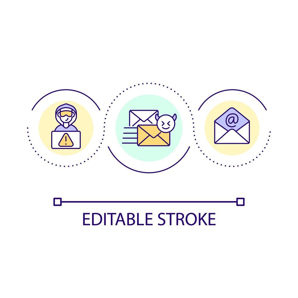 Internet scam loop concept icon. Digital fraud. Hacker attacks. Social engineering crime. Blackmail abstract idea thin line illustration. Isolated outline drawing. Editable stroke Pro Vector