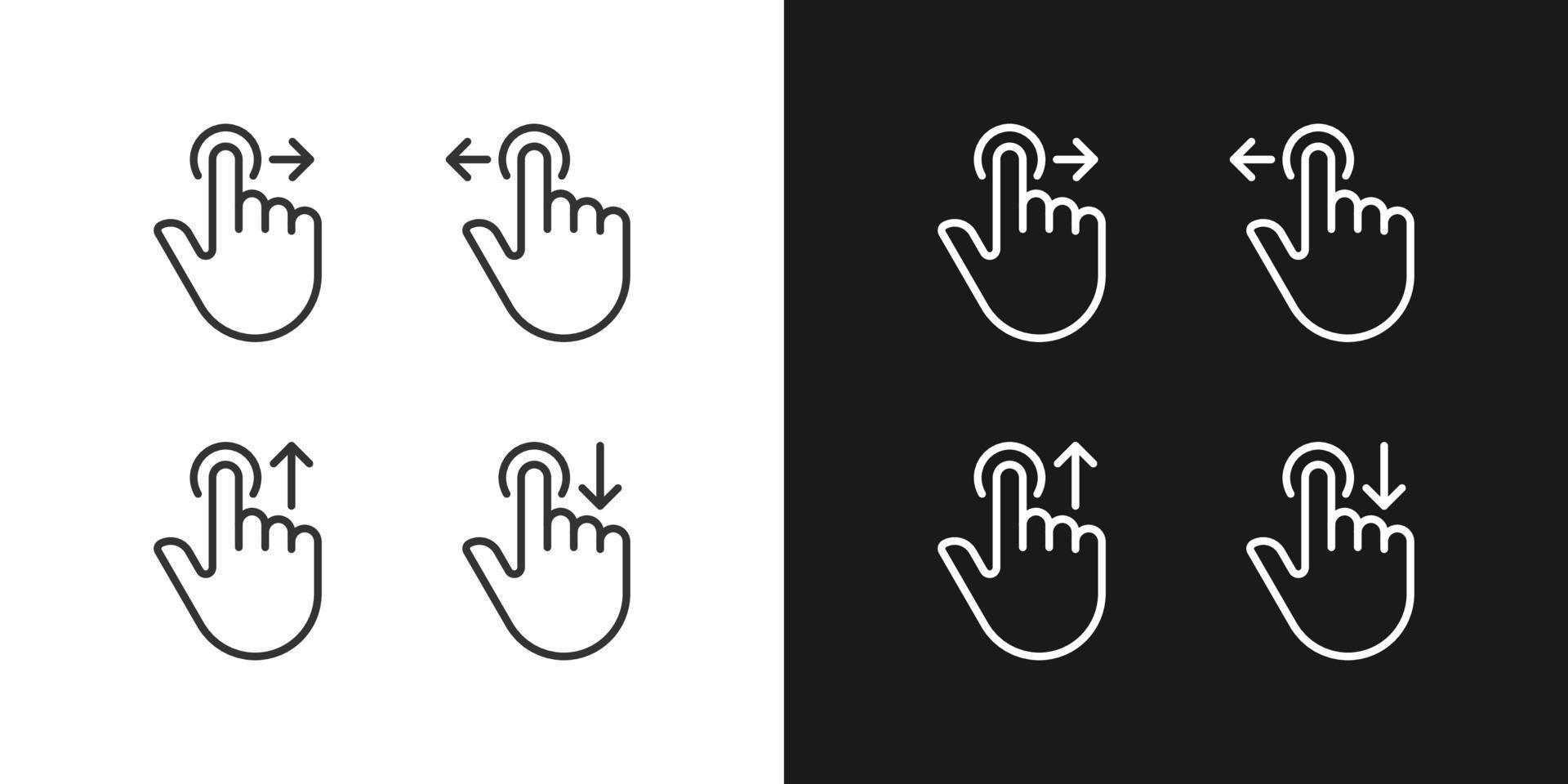 Hold and move pixel perfect linear icons set for dark, light mode. Long tap and draw. Touchscreen gestures. Smartphone. Thin line symbols for night, day theme. Isolated illustrations. Editable stroke Pro Vector
