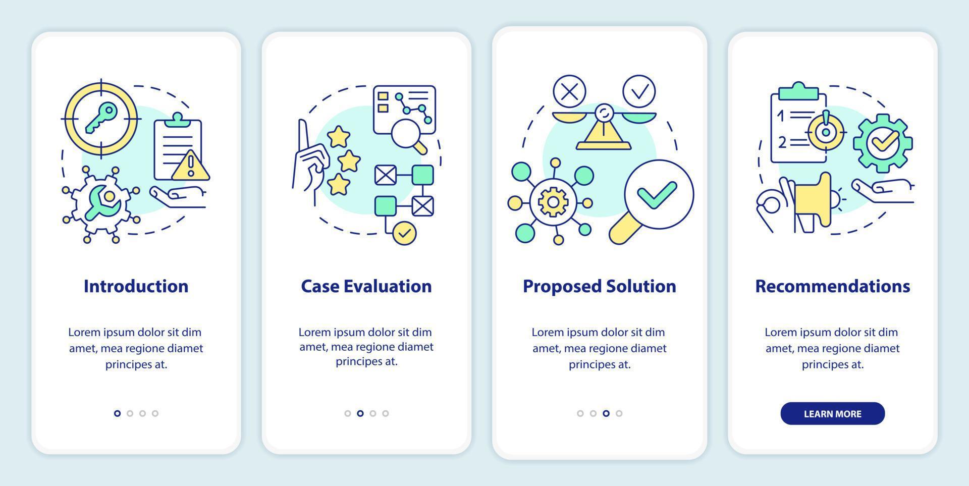 Case drafting onboarding mobile app screen. Studying plan walkthrough 4 steps editable graphic instructions with linear concepts. UI, UX, GUI template Pro Vector