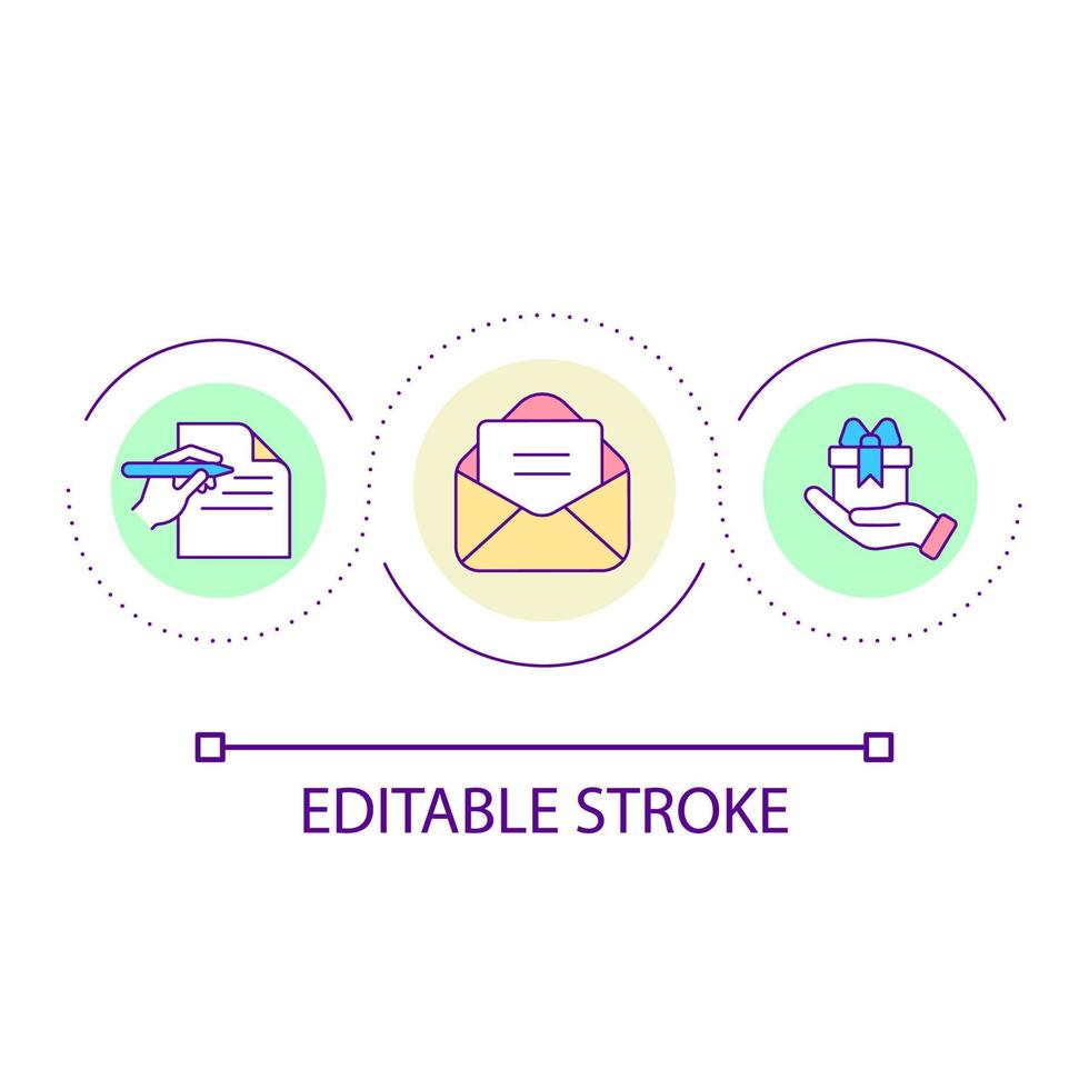 Writing greeting letters loop concept icon. Communication by mail. Sending gift and wishes abstract idea thin line illustration. Isolated outline drawing. Editable stroke Pro Vector