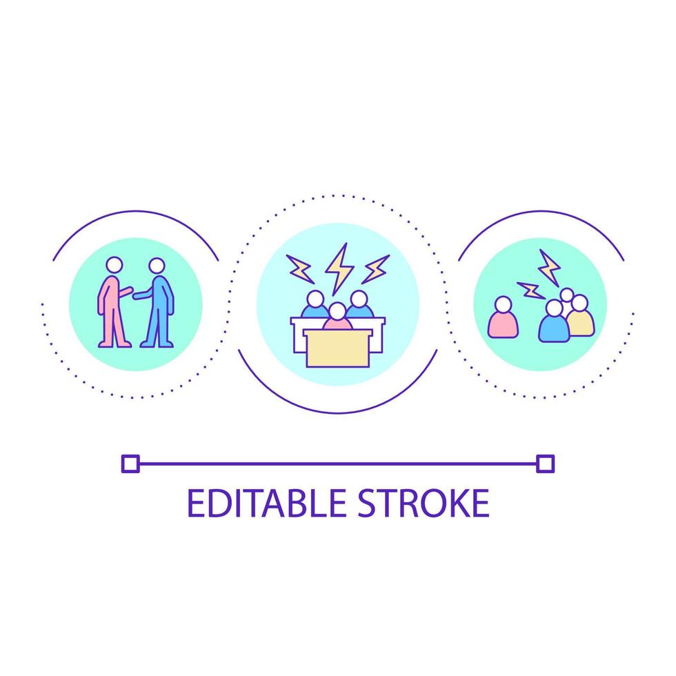 Conflicts in team loop concept icon. Communication issues. Solving company problems abstract idea thin line illustration. Isolated outline drawing. Editable stroke Pro Vector