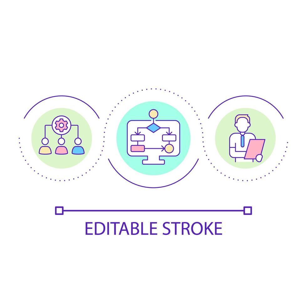 Technology in teamwork loop concept icon. Algorithm integration in workplace. Automation abstract idea thin line illustration. Isolated outline drawing. Editable stroke Pro Vector