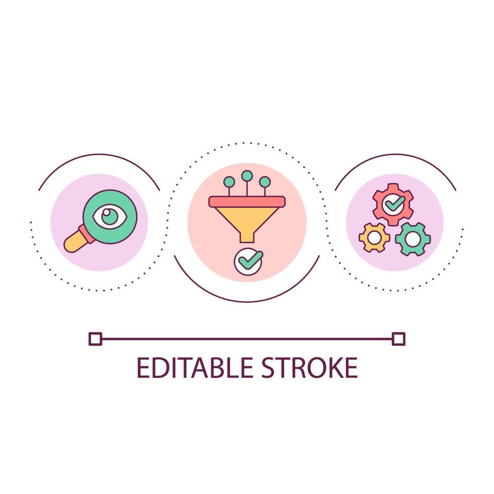 Data filtration loop concept icon. Information analysis technology. Cyberspace security abstract idea thin line illustration. Isolated outline drawing. Editable stroke Pro Vector