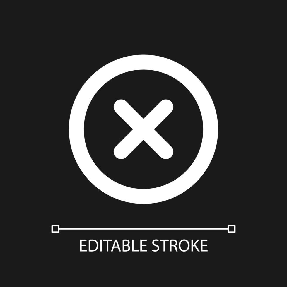 Delete button pixel perfect white linear ui icon for dark theme. Alert error. Menu command. Vector line pictogram. Isolated user interface symbol for night mode. Editable stroke Pro Vector