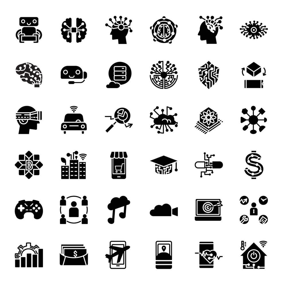 Innovative artificial intelligence and technology icon set in fill style. Pro Vector