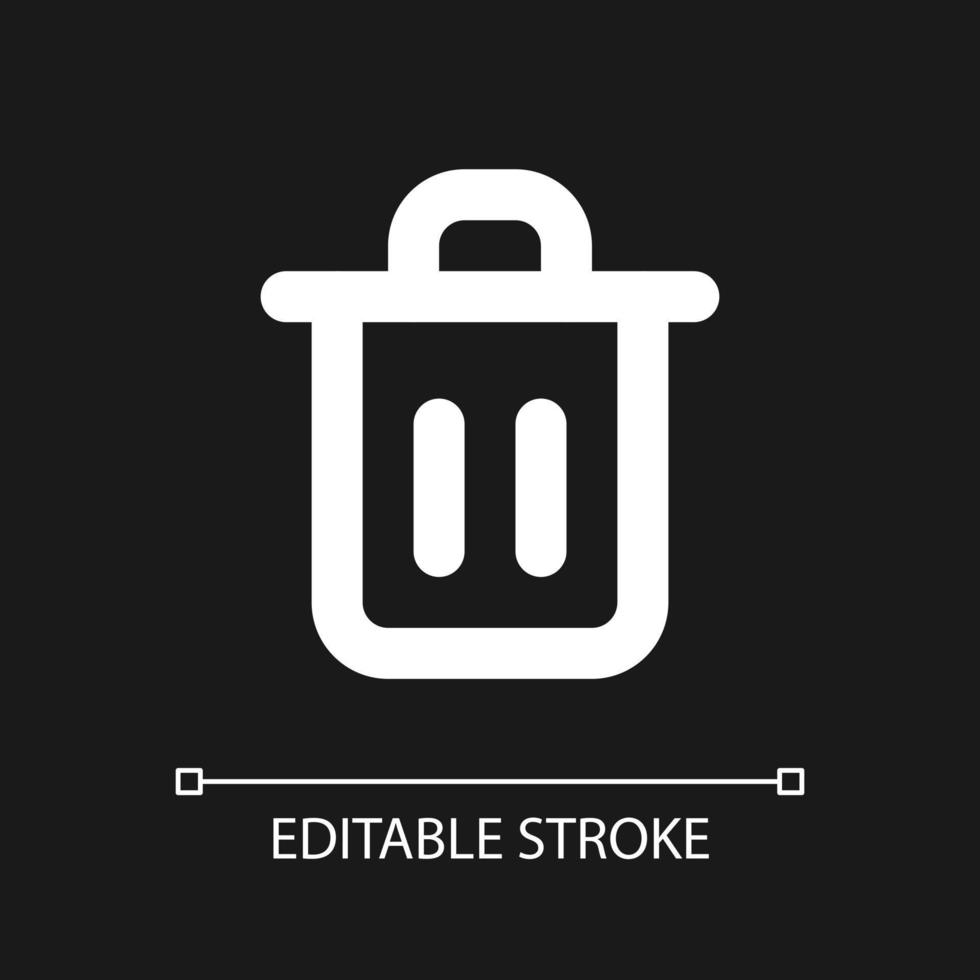 Trash can pixel perfect white linear ui icon for dark theme. Delete button. Recycle bin. Vector line pictogram. Isolated user interface symbol for night mode. Editable stroke Pro Vector