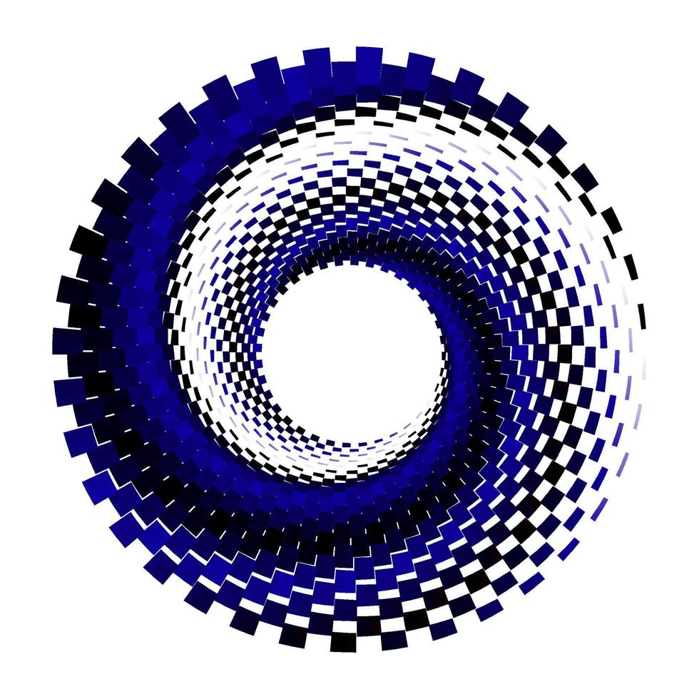 Blue, black and white dash swirl pattern circle logo vector. Circular gradient dashed spiral vortex. Pro Vector