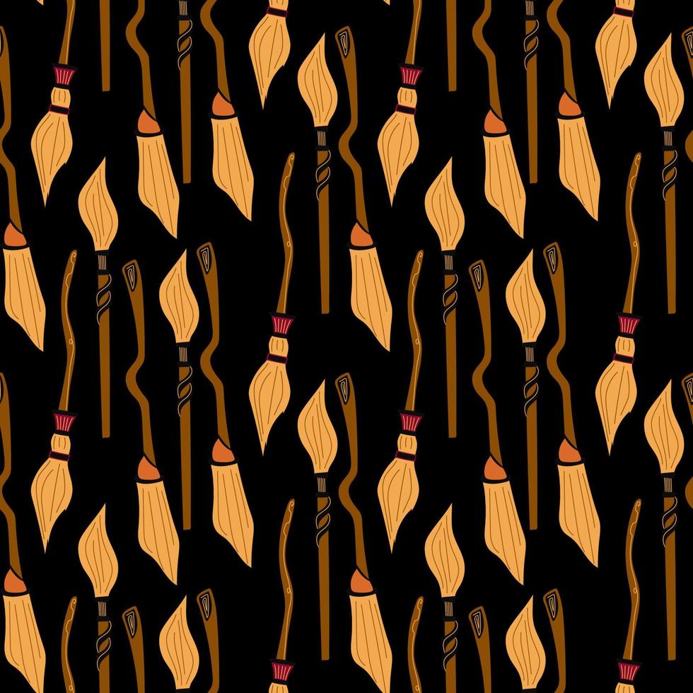 Witch seamless pattern. Elements for witches at school of magic in doodle style on dark background. Minimalistic halloween pattern. Pro Vector