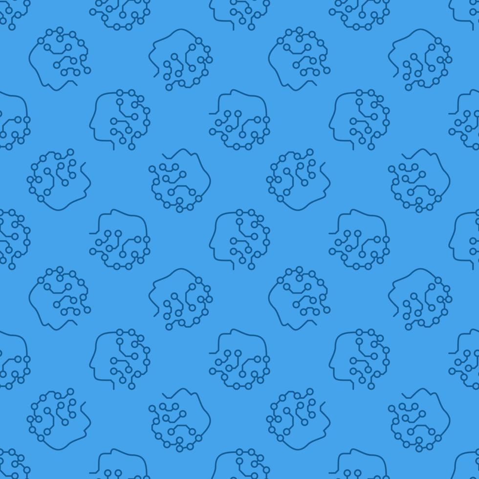 Machine Learning Robot Head vector ML blue line seamless pattern Pro Vector