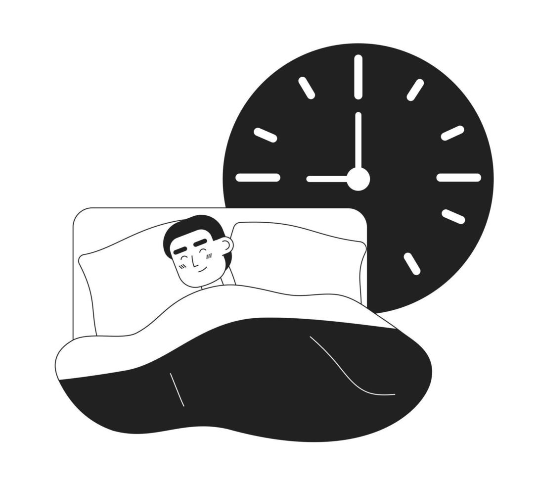 Get enough sleep monochrome concept vector spot illustration. Editable 2D flat bw cartoon character for web UI design. Healthy rest at night creative linear hero image for landings, mobile headers Pro Vector
