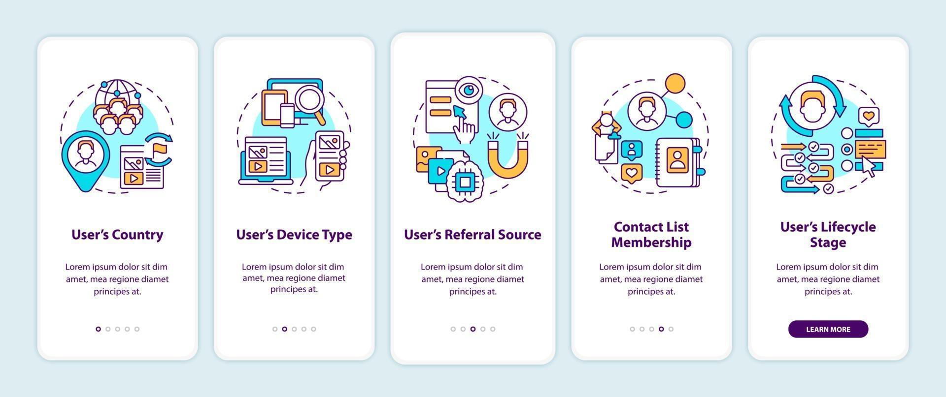Smart rules criteria onboarding mobile app page screen with concepts Pro Vector