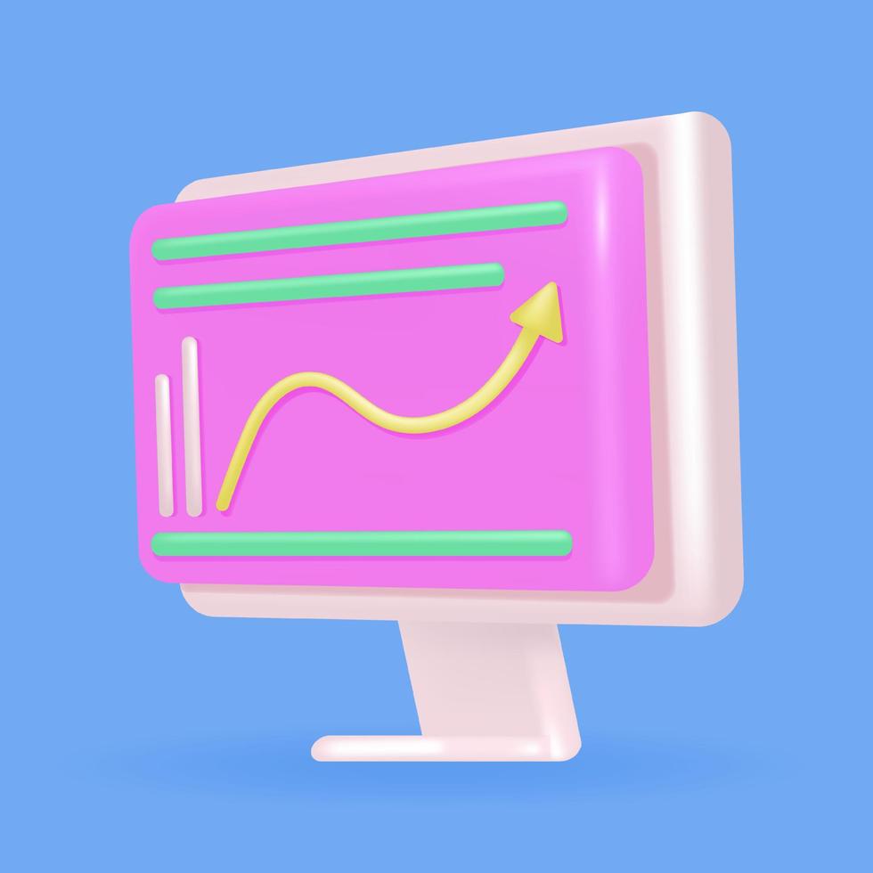 Computer monitor with up curve view, 3d vector suitable for design asset and business Pro Vector
