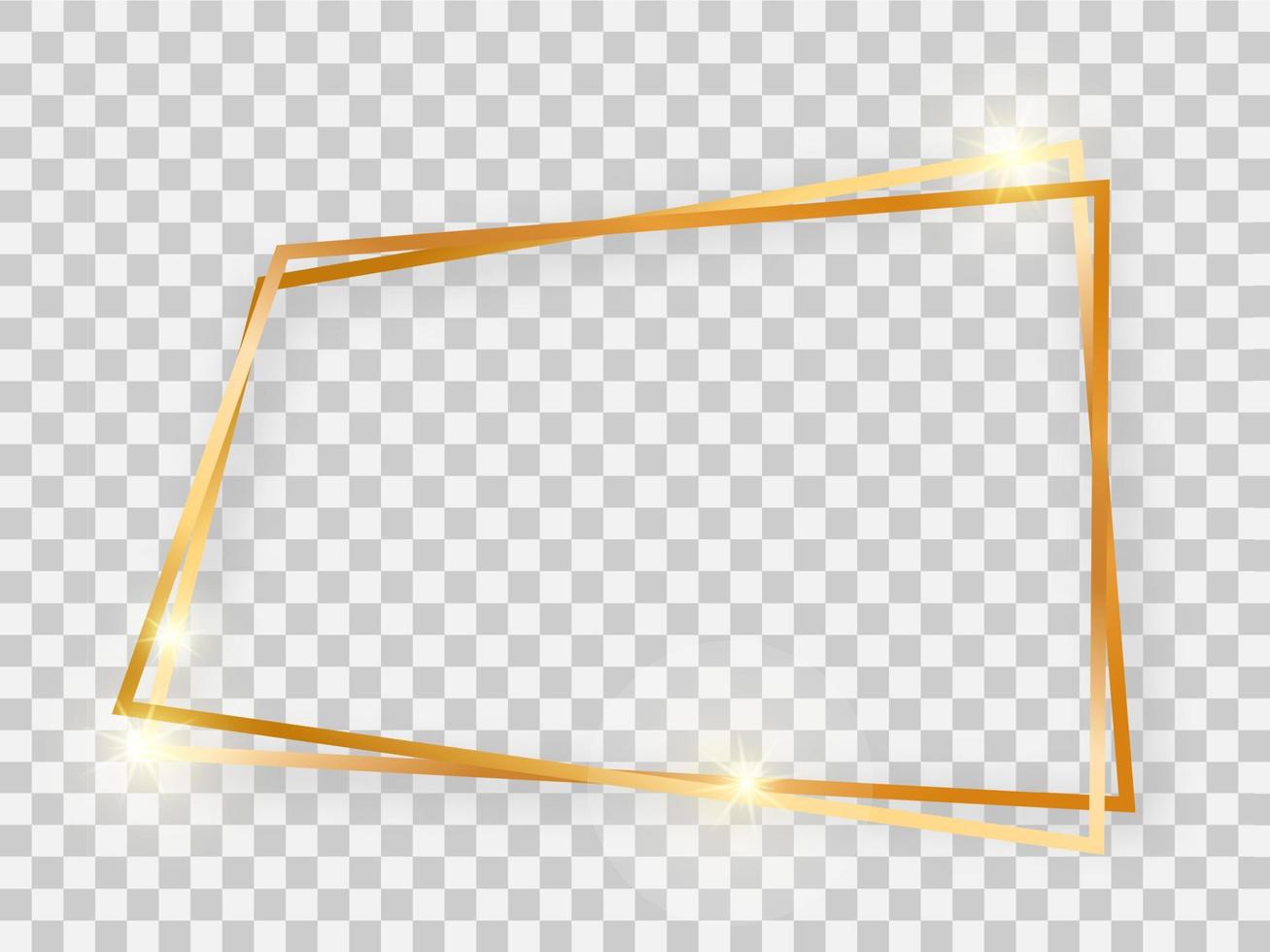 Double gold shiny trapezoid frame with glowing effects and shadows on background. Vector illustration Pro Vector