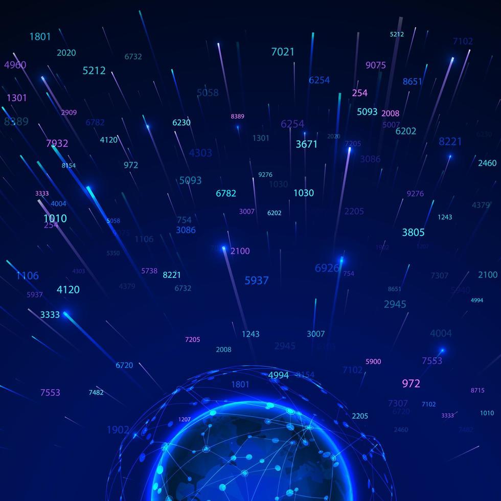 Big data concept. Random numbers and data streams around global network. Futuristic technology background. Vector illustration Pro Vector