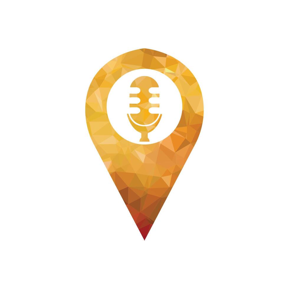 Illustration of a map marker icon with a microphone on a white background Pro Vector