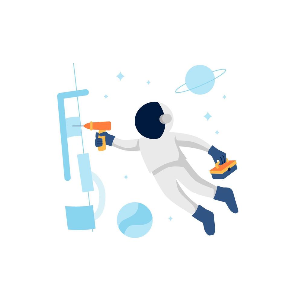 Astronaut or Cosmonaut repair satellite or spaceship with floating at space for under construction error page empty state illustration Pro Vector