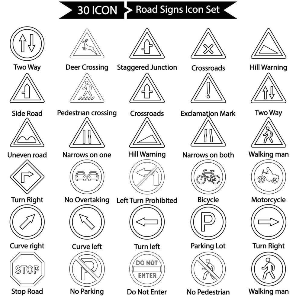 Road Signs Line Icon Set Pro Vector