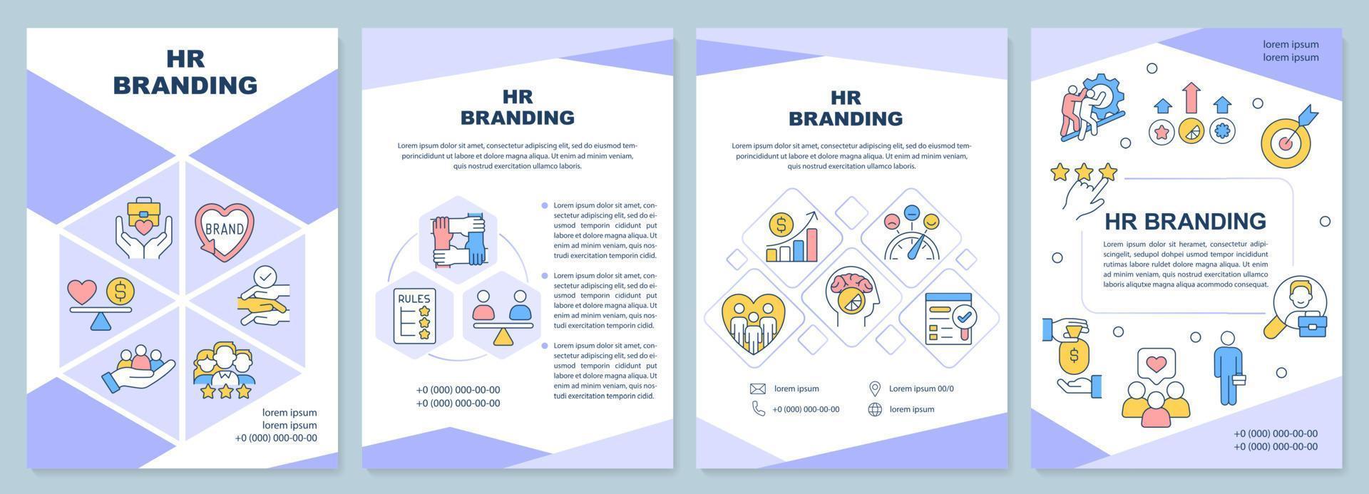 HR branding violet brochure template. Company values. Leaflet design with linear icons. Editable 4 vector layouts for presentation, annual reports Pro Vector
