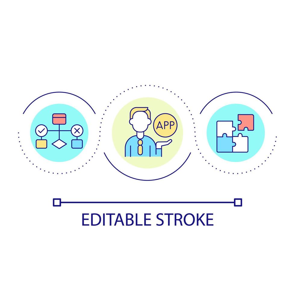 Apps development loop concept icon. Artificial intelligence for decision making. Digitization abstract idea thin line illustration. Isolated outline drawing. Editable stroke Pro Vector