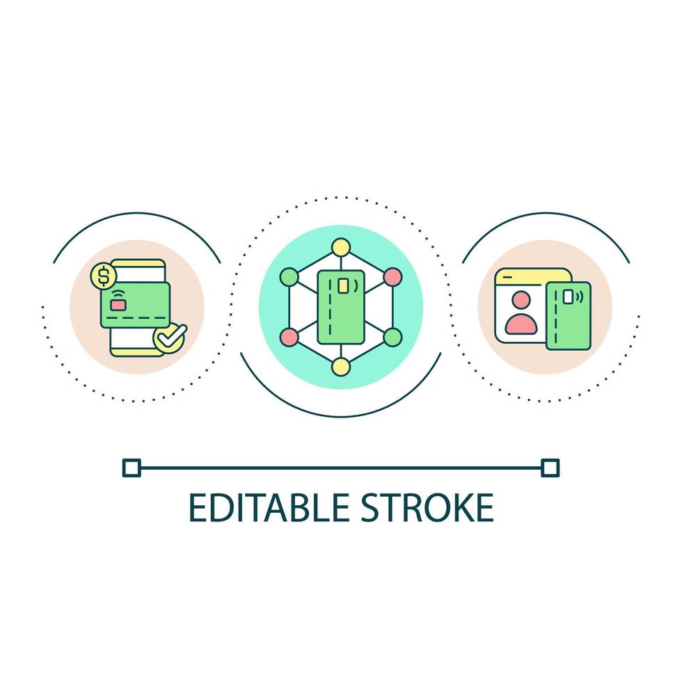 Online access to credit card balance loop concept icon. Network of financial assets. Bank account abstract idea thin line illustration. Isolated outline drawing. Editable stroke Pro Vector