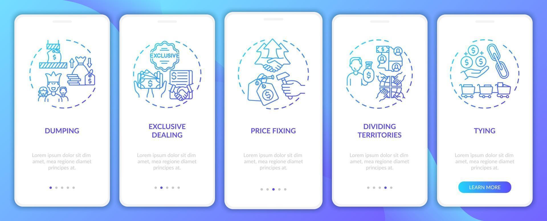 Uncompetitive practices onboarding mobile app page screen with concepts Pro Vector