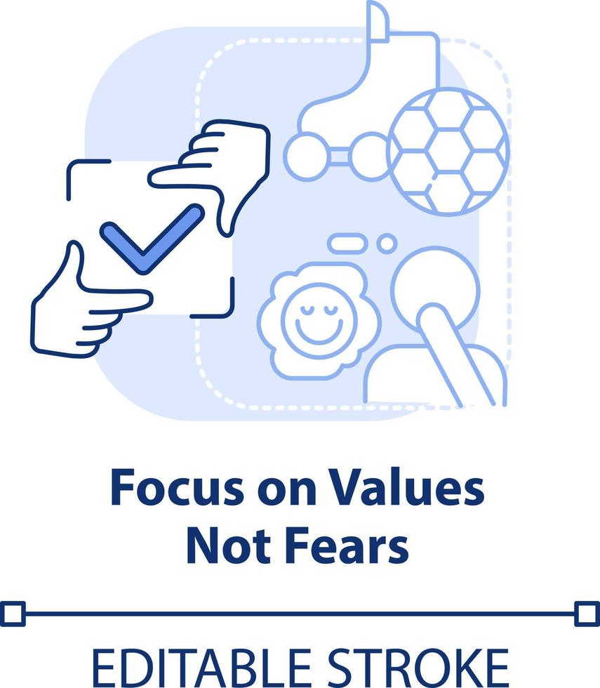 Focus on values not fears light blue concept icon. Dealing with change abstract idea thin line illustration. Isolated outline drawing. Editable stroke Pro Vector