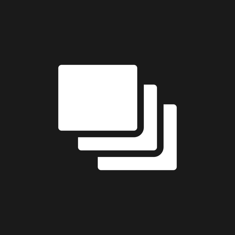 Series of layers dark mode glyph ui icon. Simple filled line element. User interface design. White silhouette symbol on black space. Solid pictogram for web, mobile. Vector isolated illustration Pro Vector