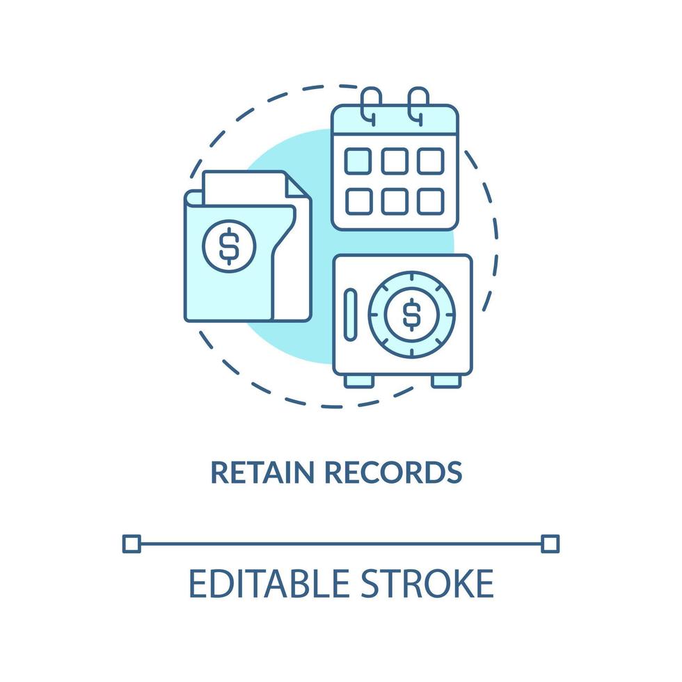 Retain records turquoise concept icon. Financial documents. Payroll processing step abstract idea thin line illustration. Isolated outline drawing. Editable stroke Pro Vector