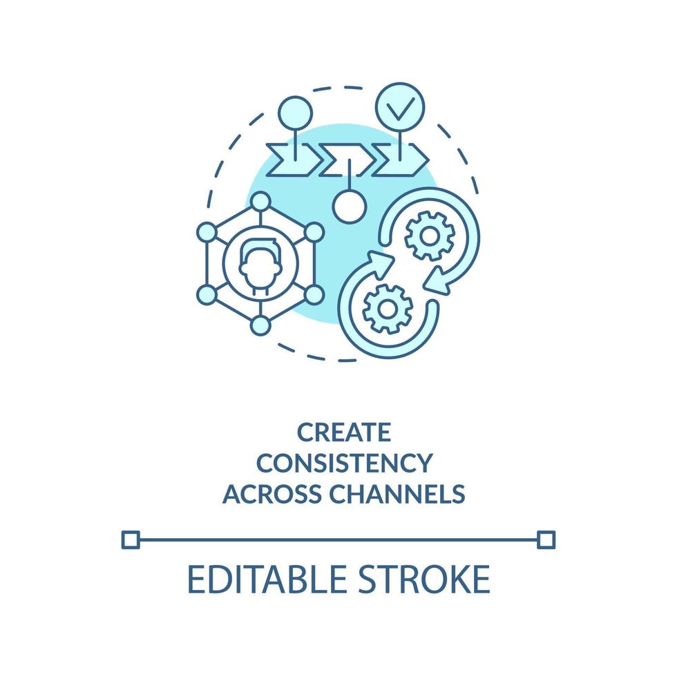 Create consistency across channels turquoise concept icon. Provide relevant content abstract idea thin line illustration. Isolated outline drawing. Editable stroke Pro Vector