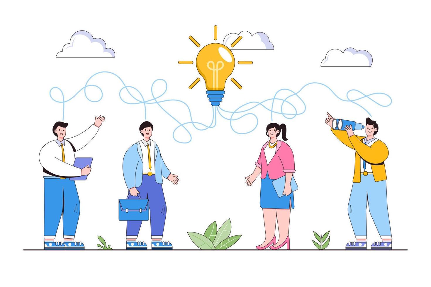 Brainstorming, solving business problems, beginning and end to thought concept. Outline design style minimal vector illustration for landing page, web banner, infographics, hero images Pro Vector