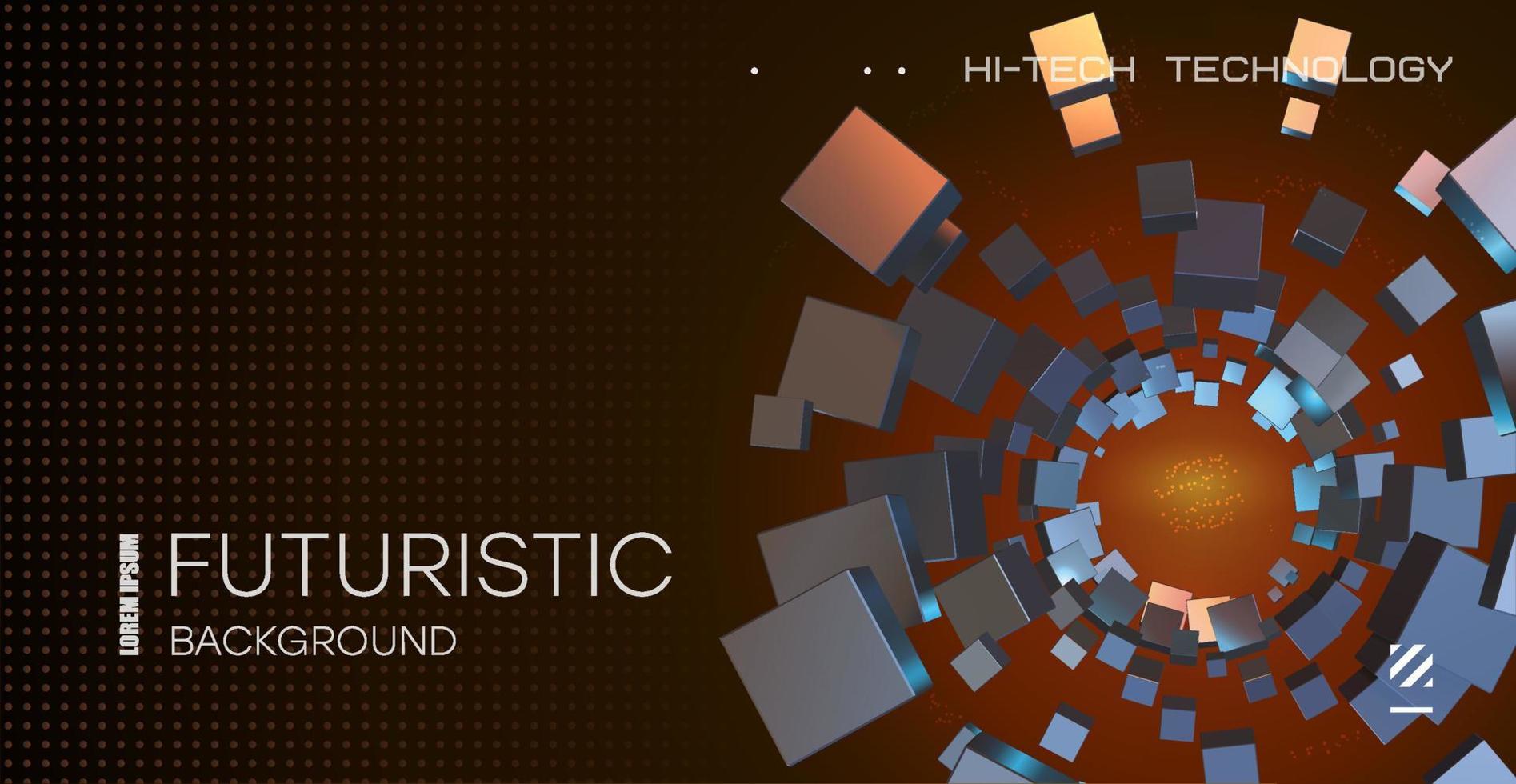 Abstract technological background. Space abstract technology background. Cubes flying in a whirlpool. Gradient illustration with place for text. Pro Vector
