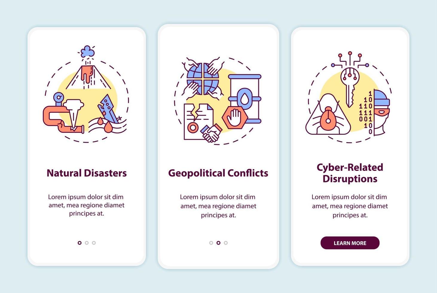 Energy security threats onboarding mobile app page screen with concepts Pro Vector