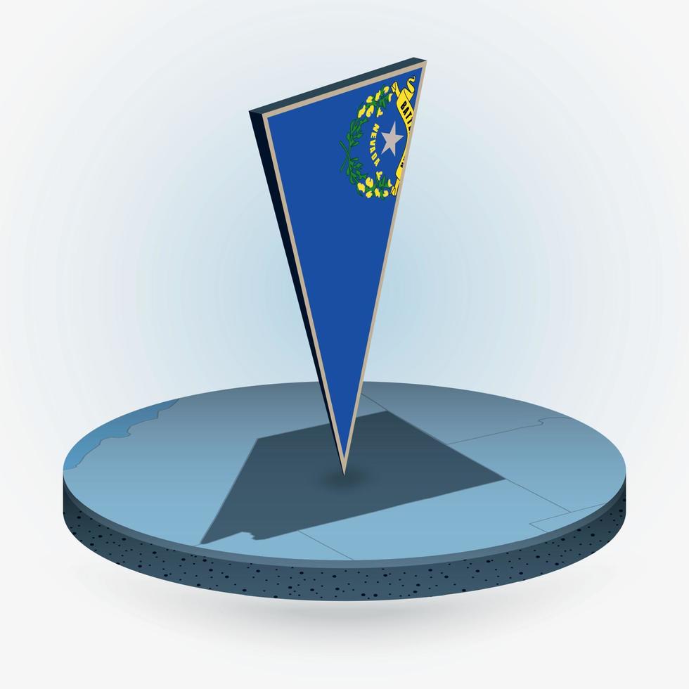 Nevada map in round isometric style with triangular 3D flag of US State Nevada Pro Vector