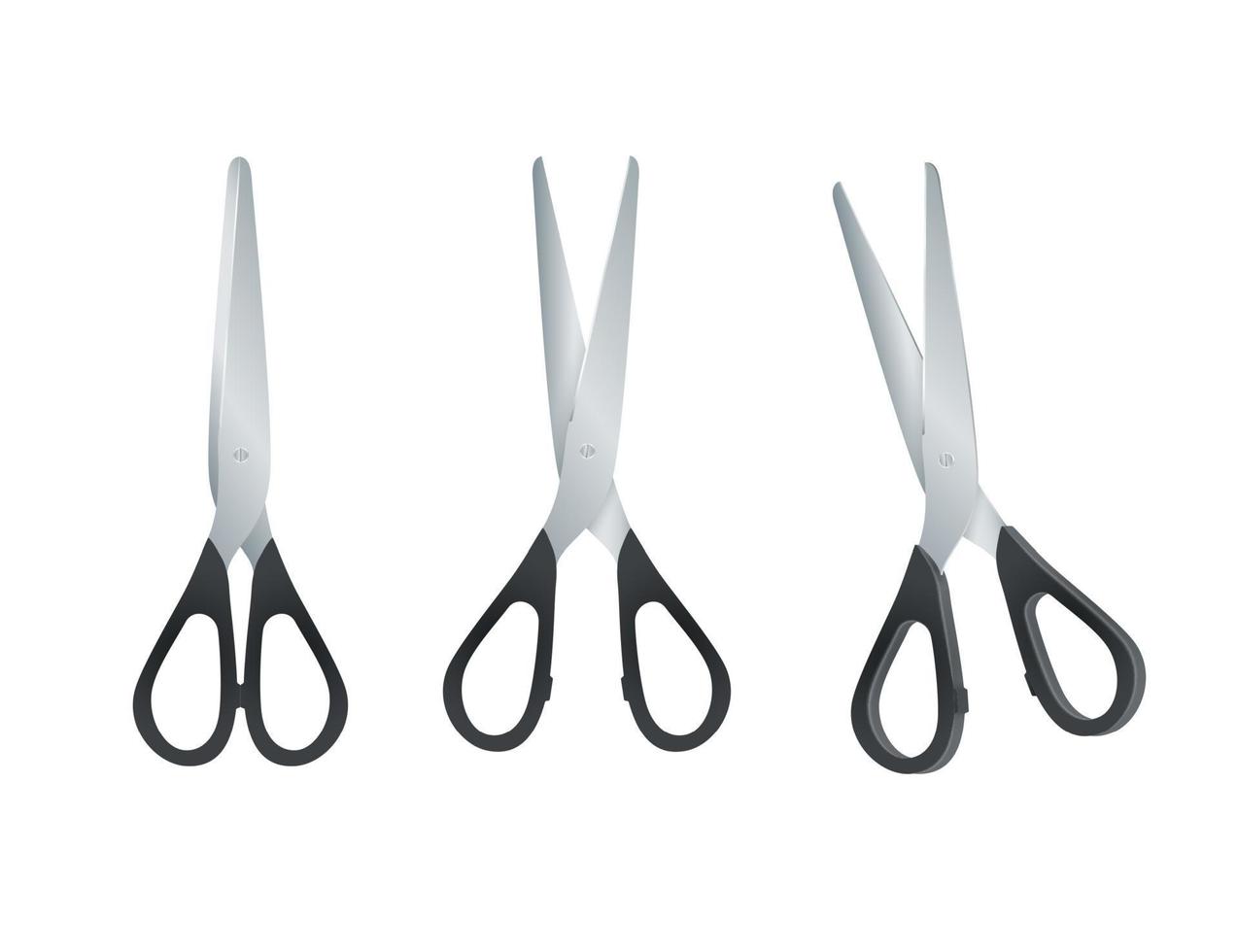 Scissors with black plastic handles. open and closed scissors isolated on white background. Vector Pro Vector